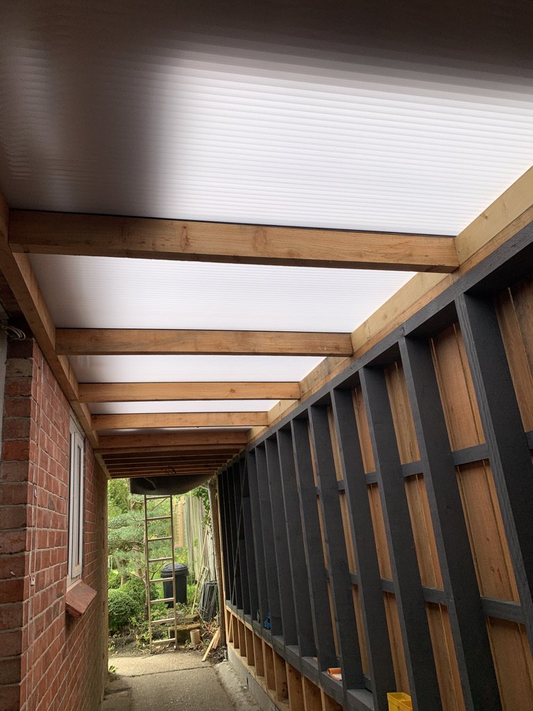 Here is just a sample of the timber structures we have built over the last few years, from front porches to large extensions. We use a mixture of species some green oak structures, some douglas fir and try to use British grown timber where possible.